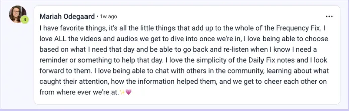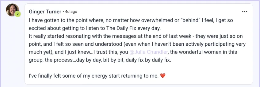 As part of Julie's Soul Focus group, i am getting so much information which i have been wanting but didn't quite know where to find it all! She definitely knows her stuff and has a lovely and down to earth way about her. Everything is easy to understand and there's no pressure to keep up, just go at your own pace for wherever you are in your journey! :) Everything is easy to understand and there's no pressure to keep up, just go at your own pace for wherever you are in your journey! :)