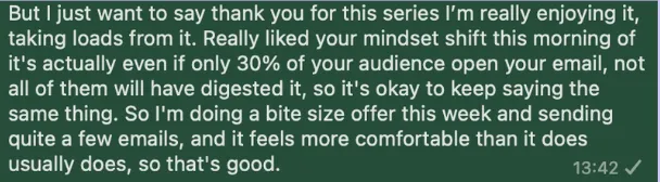 The coaching has inspired me to keep it simple, not lose time getting into the details of my program before someone has bought it.